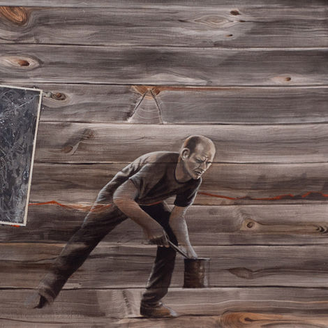 I målerier och foto klargörs Protagonistens, ”Tecknarens”, intresse för Jackson Pollocks expressiva konstnärliga uttryck.